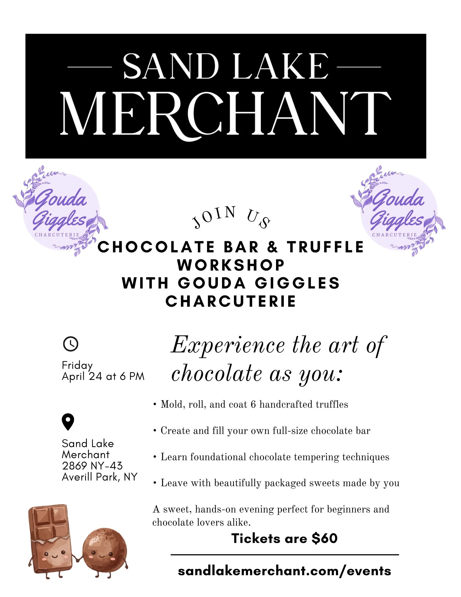 Friday, April 24th, 2026- Chocolate Bar & Truffle Workshop 6pm