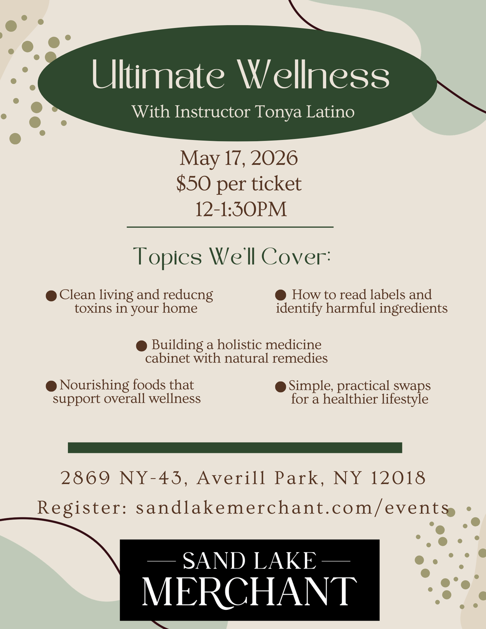 Sunday, May 17, 2026- Ultimate Wellness Workshop 12-1:30pm
