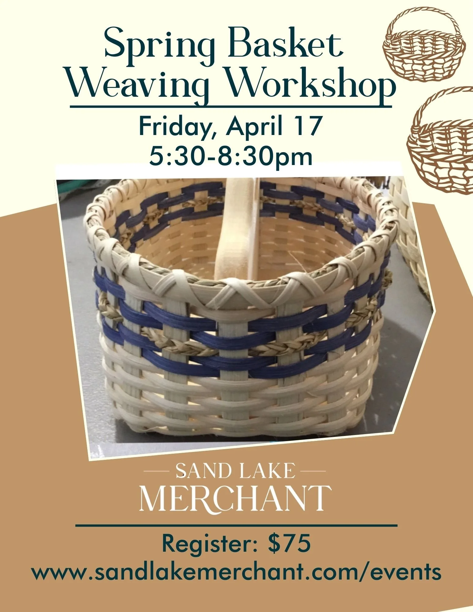 Friday, April 17th, 2026- Spring Basket Weaving Workshop 5:30-8pm