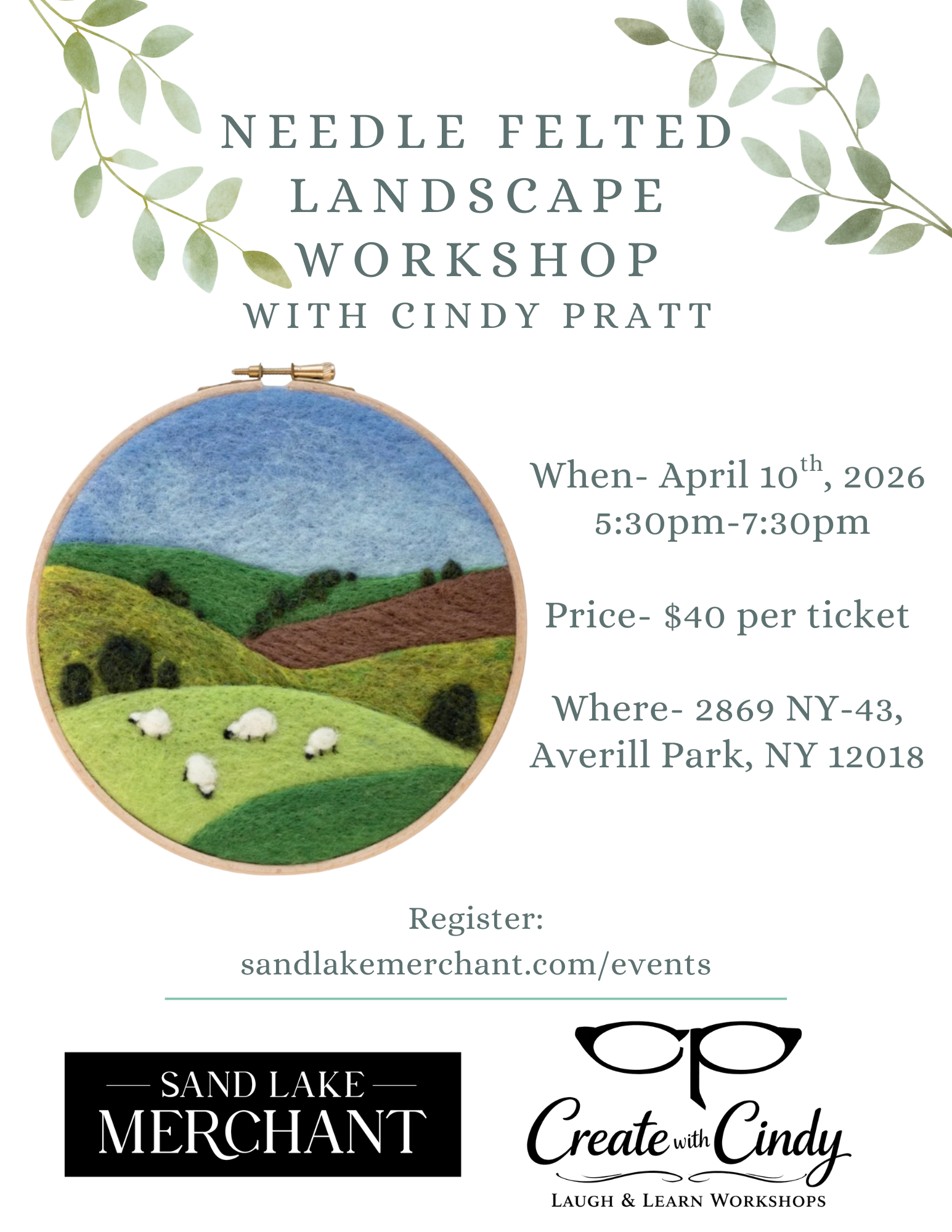 Friday, April 10th, 2026-Needle Felted Landscape Workshop 5:30pm-7:30pm